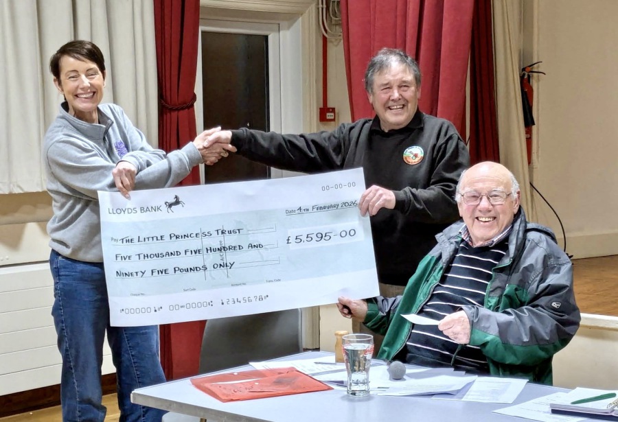 The photo below shows our Chairman Keith Prosser and Vice Charman Ian Pugh presenting a cheque for £5595.00 to Kim Musson the Relationships Manager for the Little Princess Trust .